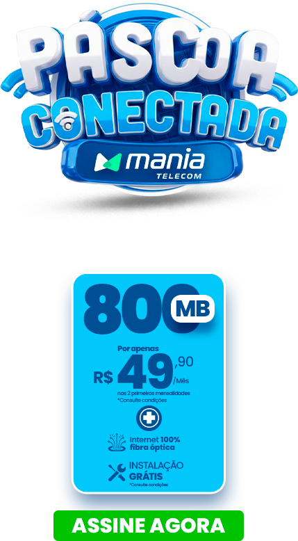 A Mania Telecom é uma empresa que esta há 4 anos no mercado e tem o compromisso de levar aos nossos clientes uma experiência única em acesso a internet. Contamos com uma equipe com colaboradores treinados e capacitados para melhor atender nossos clientes. Além disso, disponibilizamos Suporte Call Center gratuito 24hs por dia todos os dias da semana.
